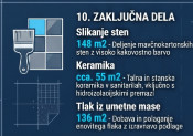 Zemeljska in betonska dela, fasaderska dela, strojne in elektro inštalacije, zaključna dela.